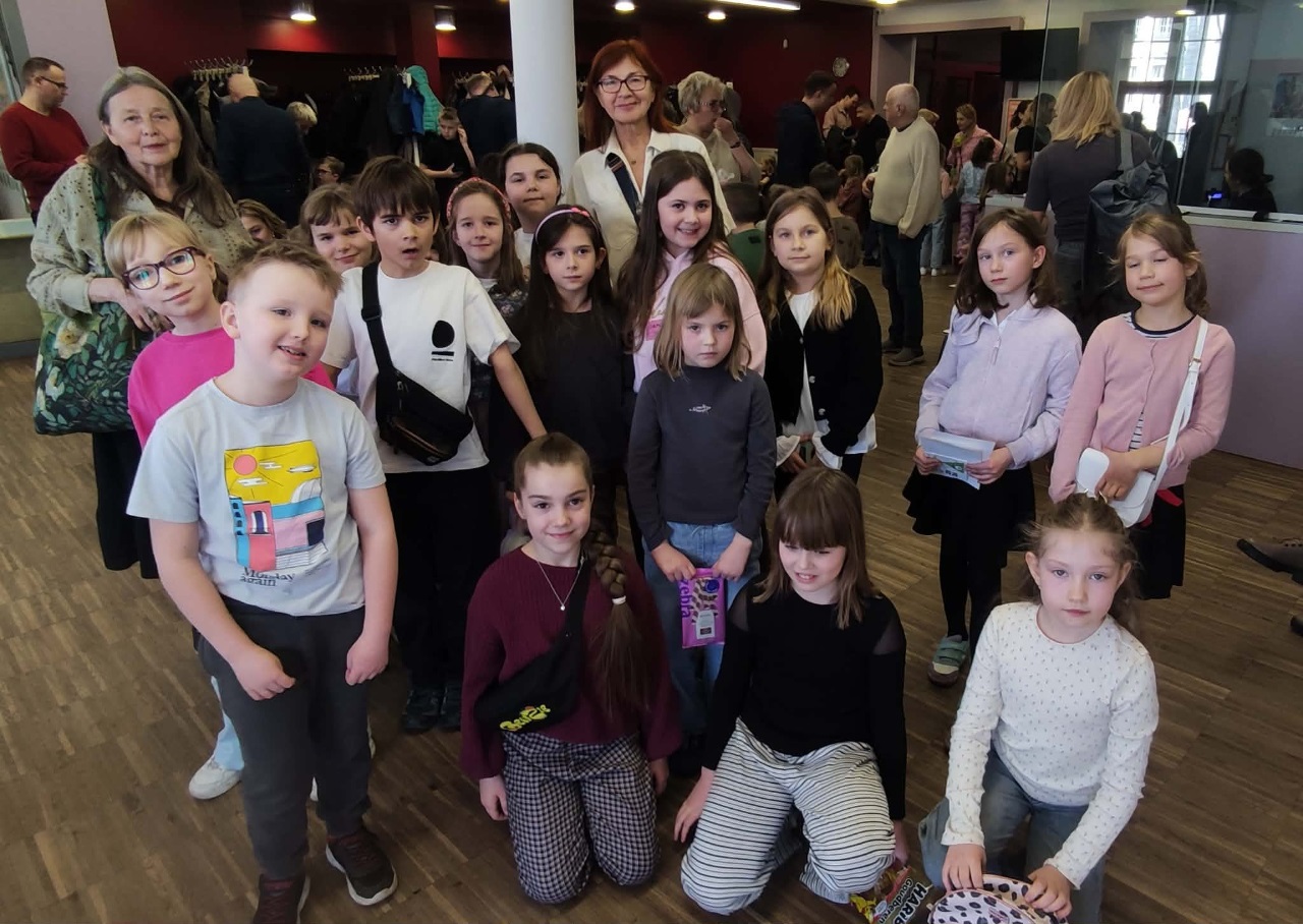 Grupa dzieci ze Stowarzyszenia Małych Artystów obejrzała „Bajkę o księciu Pipo, koniu Pipo i księżniczce Popi” w Miejskim Teatrze Miniatura (14.03.2026 r.). Muzyczna opowieść o podróży została zrealizowana na podstawie książki francuskiego autora Pierra Gripariego. Reżyserka przeniosła nas „…do świata wyobraźni, w którym nie brakuje humoru i emocji, nieoczekiwanych przygód, baśniowych postaci i elementów cyrkowego widowiska”. W przedstawieniu udział wzięła grupa młodych aktorów-dzieci, która doskonale poradziła sobie z aktorskim wyzwaniem. Muzyczna bajka wzbudziła zachwyt całej widowni, zarówno tej dziecięcej, jak i dorosłej, a nagrodą dla wszystkich występujących były owacje na stojąco na zakończenie spektaklu.